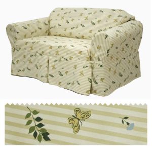 Paulette Butterfly Arm Cover Protectors is a unique novelty pattern. Featuring butterfly pattern on quarter inch horizontal stripe in beige and cream. Other colors include mustard, blue and green. Screen printed on durable cotton duck. Add intriguing color and dimension to your living space with this fabulous cover. Upholstery grade textile.