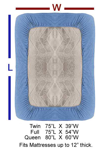 Works on mattresses measuring 39 inches wide X 75 inches long and up to 12 inches thick. Offers inexpensive alternative to a bed cover or even a futon cover. Works just like fitted sheet, covering the top, the sides and partially bottom of a mattress. Elasticized construction allows for easy fit and removal. See "Measuring Guide" for other sizes.